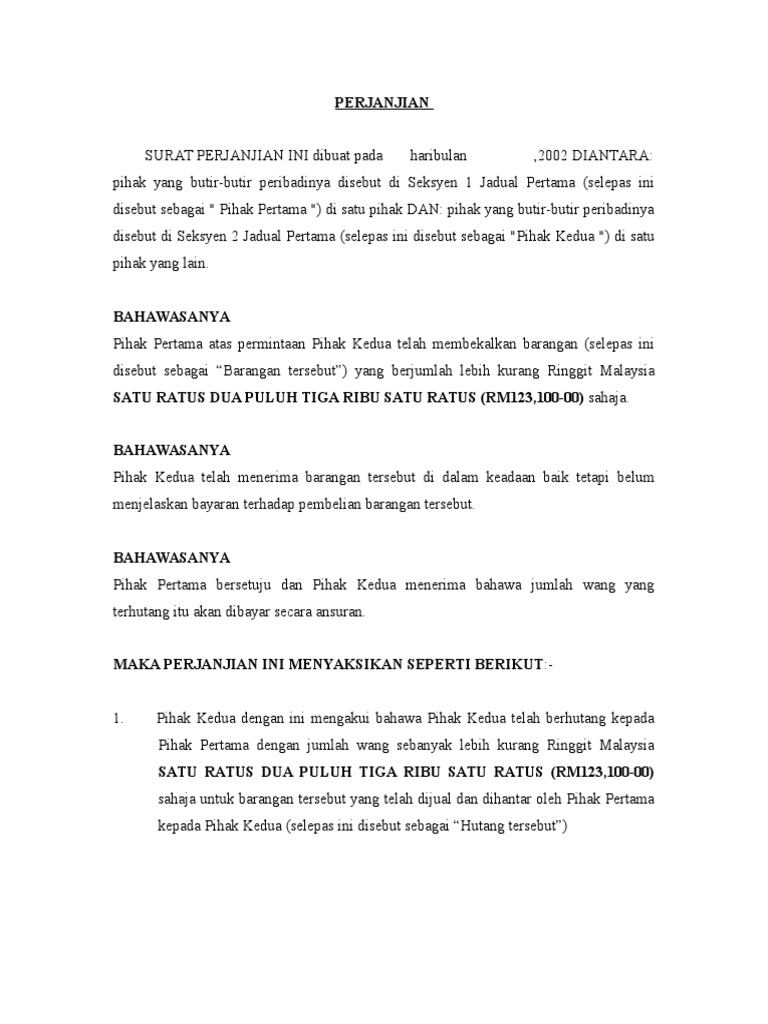 Agreement Contoh Surat Perjanjian Pinjaman Wang